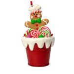 Llena tu árbol de diversión y espíritu navideño con este encantador balde lleno de dulces de jengibre. Su diseño colorido y detallado aporta un toque alegre y festivo, evocando la magia de la temporada y el encanto de las tradiciones navideñas.