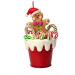 Llena tu árbol de diversión y espíritu navideño con este encantador balde lleno de dulces de jengibre. Su diseño colorido y detallado aporta un toque alegre y festivo, evocando la magia de la temporada y el encanto de las tradiciones navideñas.