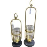 Nuestro candelabro en latón con brisero de vidrio es la pieza perfecta para quienes buscan combinar elegancia y funcionalidad. El latón aporta un brillo sofisticado y resistente, mientras que el brisero de vidrio realza la luz de la vela, generando un ambiente cálido y envolvente.