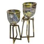 El candelabro en latón con brisero de vidrio es una pieza que combina diseño atemporal con funcionalidad. El brillo dorado del latón aporta un toque de lujo, mientras que el vidrio protege y realza la luz de la vela, creando un efecto cálido y sofisticado en cualquier ambiente.