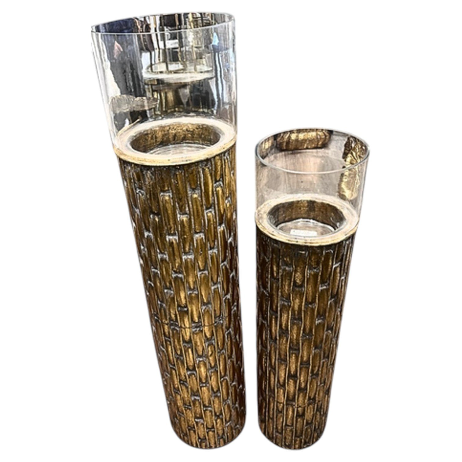 Dale un toque de sofisticación a tus espacios con nuestro candelabro en latón con brisero de vidrio, una pieza que combina la calidez del metal con la delicadeza del cristal. Su diseño atemporal no solo ilumina, sino que también transforma cualquier ambiente en un rincón acogedor y elegante.