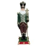 Con su porte majestuoso y su expresión amigable, este cascanueces representa la alegría de dar, la ilusión de las fiestas y la tradición que une a las familias. Ideal para colocar en la entrada, junto al árbol o sobre una mesa decorativa, se convierte en el protagonista perfecto de tu decoración navideña.