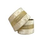 Descubre la elegancia en su máxima expresión con nuestra Cinta Terciopelada Blanca con Dorado Ancha, un accesorio decorativo que combina suavidad, brillo y distinción. Su textura aterciopelada en blanco puro, realzada con delicados bordes dorados, aporta un toque de lujo y calidez a cualquier creación o decoración.