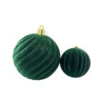 Decora tu árbol con las Esferas de Terciopelo Ondas Verde, un adorno que combina elegancia, textura y un toque natural. Su diseño en ondas y acabado aterciopelado aportan profundidad, suavidad y sofisticación, convirtiéndolas en un detalle único para tu decoración navideña.