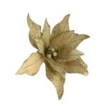 Decora tu hogar con el brillo de la elegancia con nuestra Flor de Pascua Dorada con Brillantes. Su tono dorado metálico y los sutiles destellos en sus pétalos aportan sofisticación, luz y un toque festivo único a tu decoración navideña.