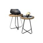 Un juego de mesas que destaca por su estilo moderno e impactante. La estructura en madera aporta calidez y naturalidad, mientras que las bases en acero brindan resistencia, estabilidad y un contraste contemporáneo que realza cualquier espacio.