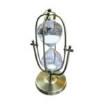 El tiempo se convierte en arte con nuestro Reloj de Arena en Acero Dorado. Su estructura metálica en acabado dorado combina modernidad y lujo, mientras la arena fluye de manera hipnótica, aportando calma y sofisticación a cualquier espacio.