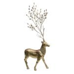 El Reno Dorado Parado con Cuerno de Hojas es una pieza decorativa única que combina la elegancia del acabado dorado con la delicadeza del diseño natural en sus cuernos. Cada detalle de hojas simboliza frescura y armonía, transformando este adorno en un elemento sofisticado y lleno de estilo.