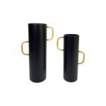Un equilibrio perfecto entre lo moderno y lo artesanal. Este set de jarrones en latón negro con detalles en fibra natural es ideal para quienes buscan piezas únicas que transmitan elegancia y calidez al mismo tiempo.