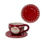 Elaborado en cerámica de alta calidad, este set destaca por su adorable ilustración de Santa Claus, cuidadosamente detallada para transmitir el espíritu navideño en cada uso. Su acabado brillante y colores vibrantes lo convierten en un elemento decorativo ideal para tu cocina, comedor o estación de café.